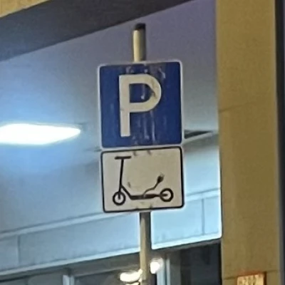 Was bedeutet dieses Schild? Scooter Ladestelle? Und sogar mit Parkplätzen vor dem Schild