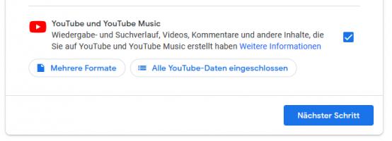 Zum Abschluß auf Nächster Schritt klicken und Einmal exportieren auswählen. Ein Klick auf Export erstellen startet den Download von all deinen YouTube Videos.