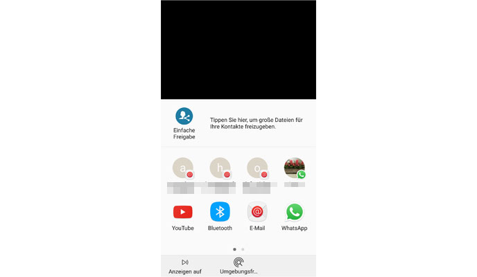 Um ein Video vom Handy auf dem PC abzuspielen, müssen wir die Videodatei auch nicht auf den PC kopieren, sondern können sie direkt vom Smartphone streamen. Dazu öffnen wir die Video App, spielen ein beliebiges Video ab und tippen wieder oben rechts auf "MEHR" und wählen "Senden".