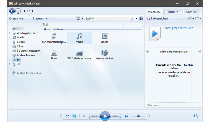Dazu geben wir in der Windows Suche "media player" ein und wählen das erste Ergebnis aus der Liste. Ist der WMP geladen, muss nur eine einzige Einstellung angepasst werden, um das Abspielen von Musik aus externen Quellen zuzulassen.