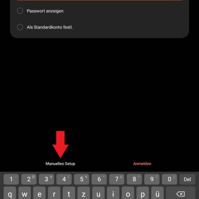 Wenn ihr wieder in der Samsung Mail App seid, tippt ihr jetzt also auf Manuelles Setup und wählt in der Auswahlliste IMAP-Konto aus