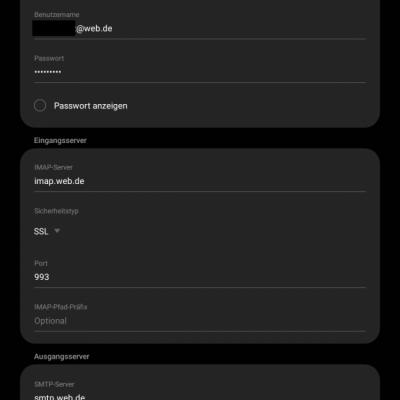 Nun kommt ein kleiner Zwischenschritt, der aber absolut notwendig ist, um web.de Mails auch von seinem Lieblingsclient abrufen zu können.
