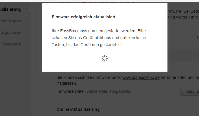 Firmware-Aktualisierung fehlgeschlagen – EasyBox Reset