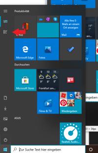 Über das Startmenü und das kleine Zahnrad in der linken Spalte kannst du die Windows Einstellungen öffnen
