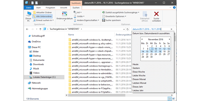 Windows Suche: Dateien nach selbst festgelegtem Zeitraum filtern